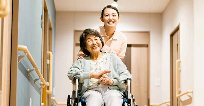 ホームにご入居いただき、身体的な支援や生活環境の整備などの支援をさせていただきます。認知症の有無、職員さんや他の利用者さんとの関わりの程度などから、高齢者住宅かグループホームを選んでいただけます。